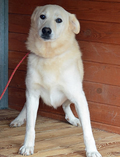 Zaprowadziła mnie do jaskini.A z niej wyszła piękna, biała suczka.